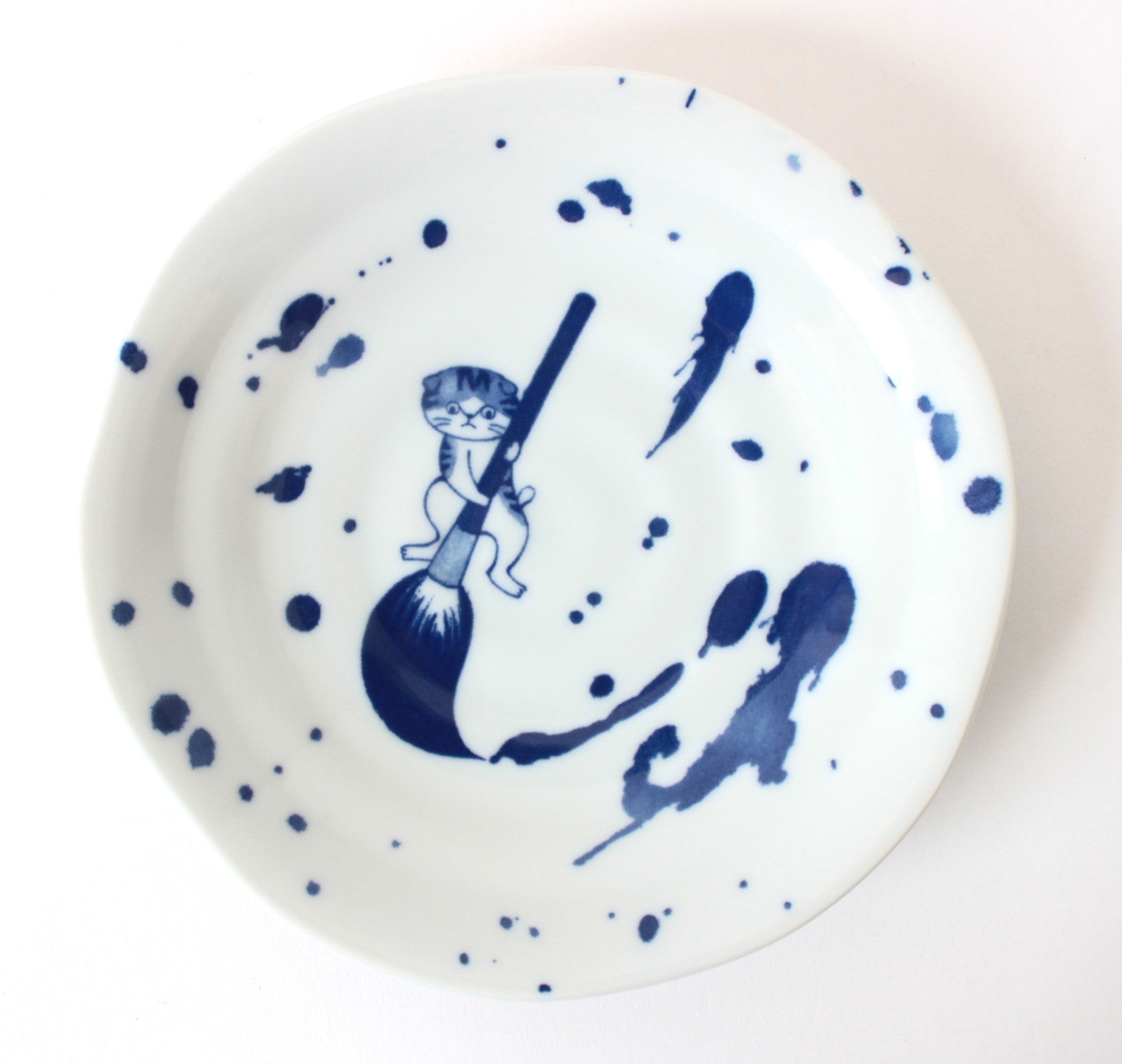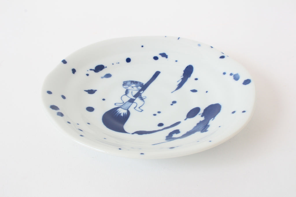 美濃焼 5.0寸平皿 染め猫 吹き墨猫 (直径約16.5cm)