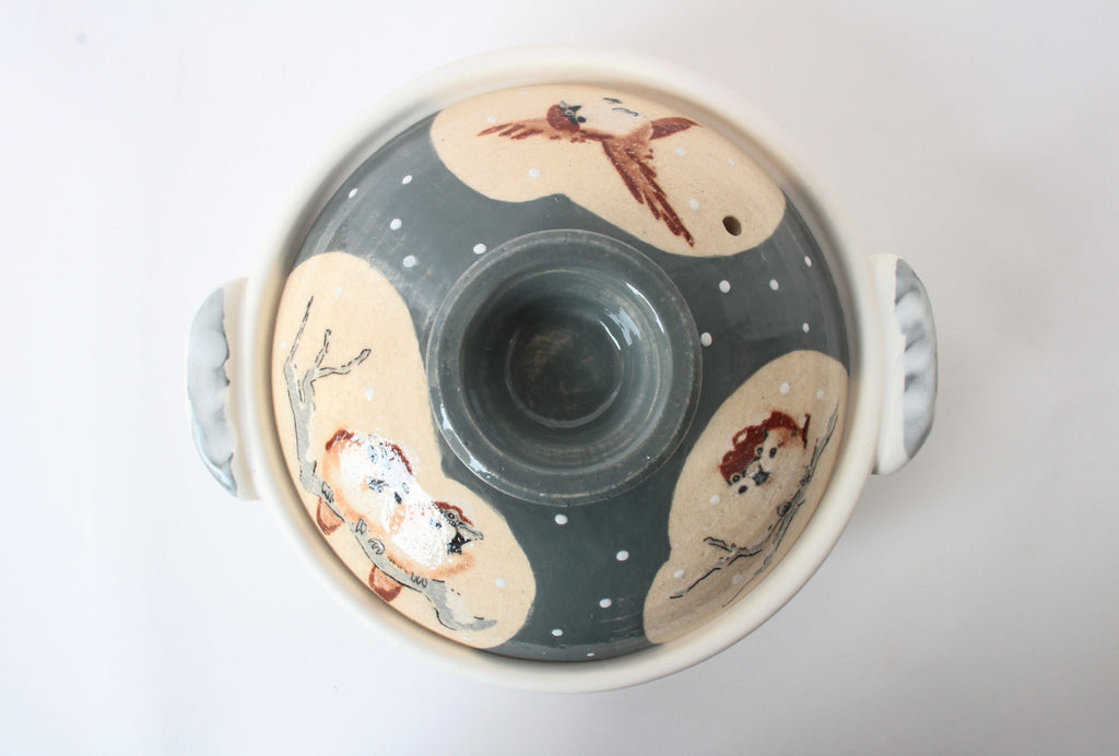 美濃焼 土鍋 (直径約21.5cm) とちりうぐいす 超耐熱陶器 直火・オーブン対応