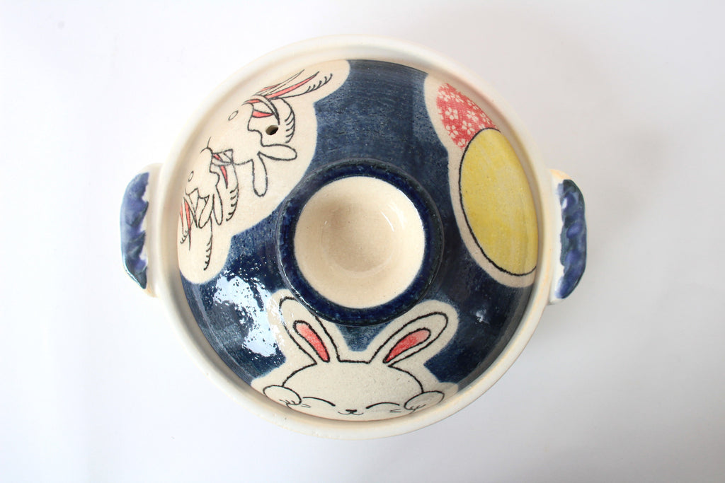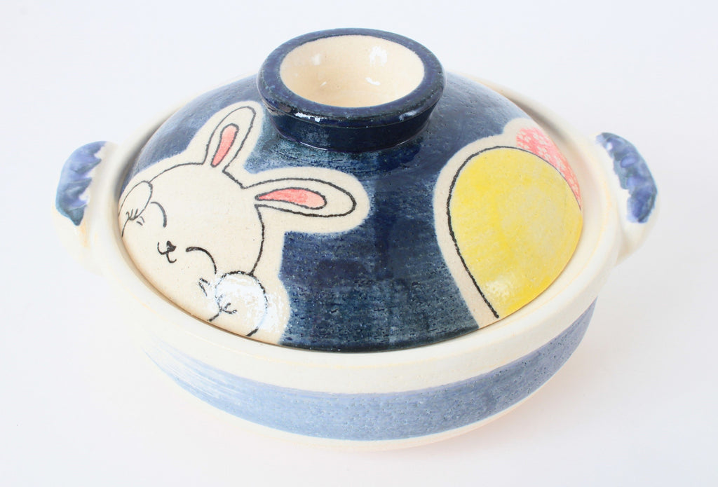 萬古焼 土鍋 満月うさぎ 6号鍋 直火・オーブン可 (直径約18.0cm)