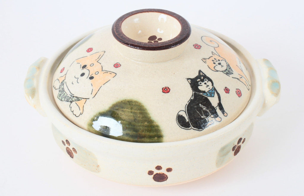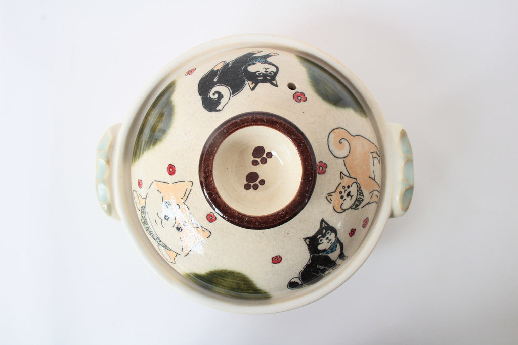 萬古焼 土鍋 柴犬のしば子さん 6号鍋 直火・オーブン可 (直径約18.0cm)