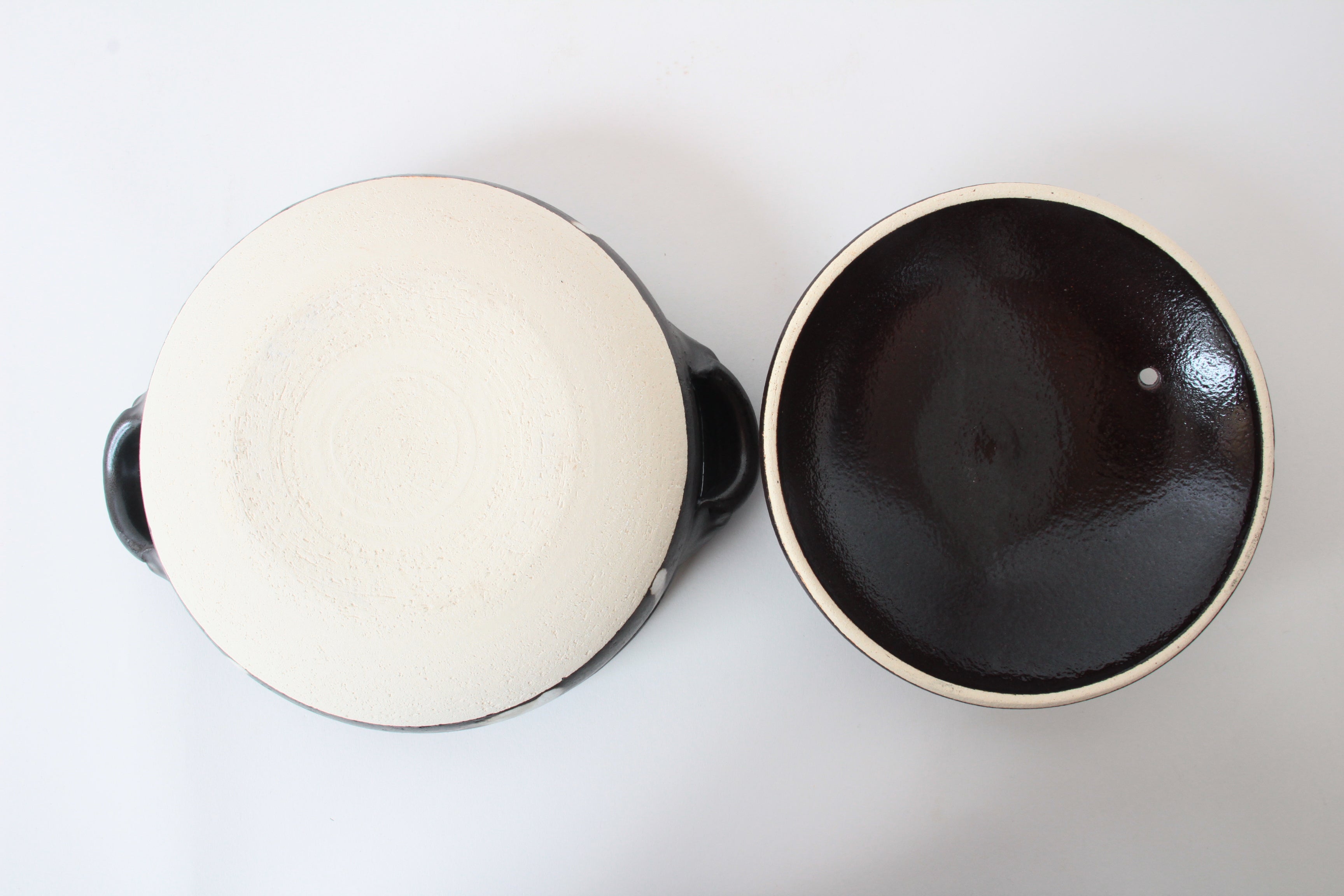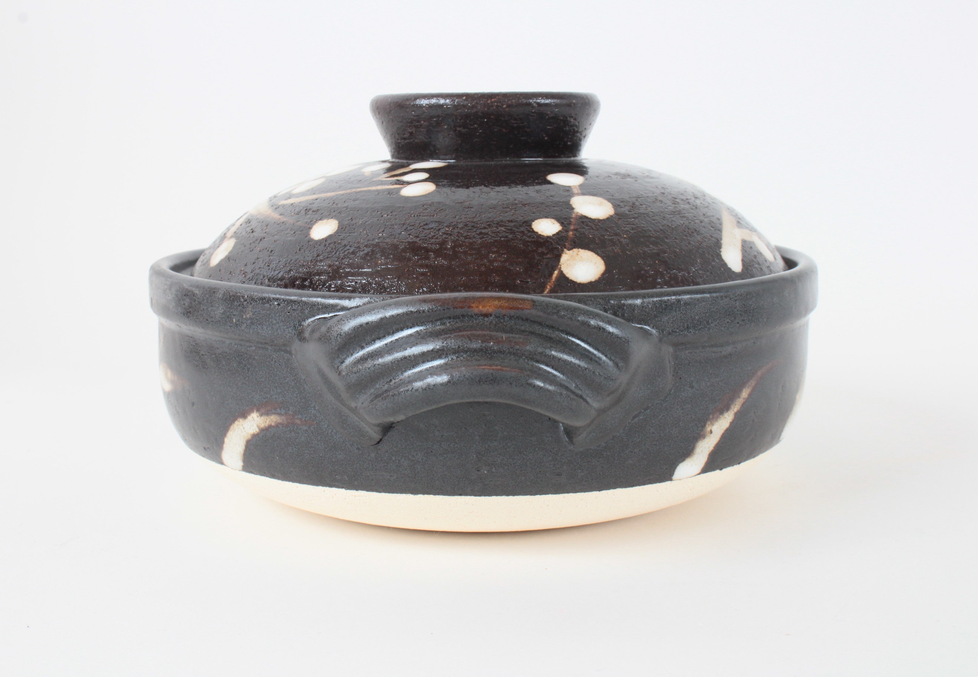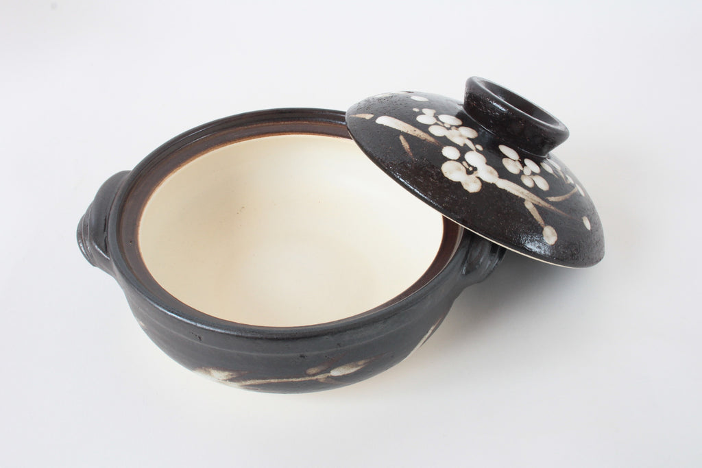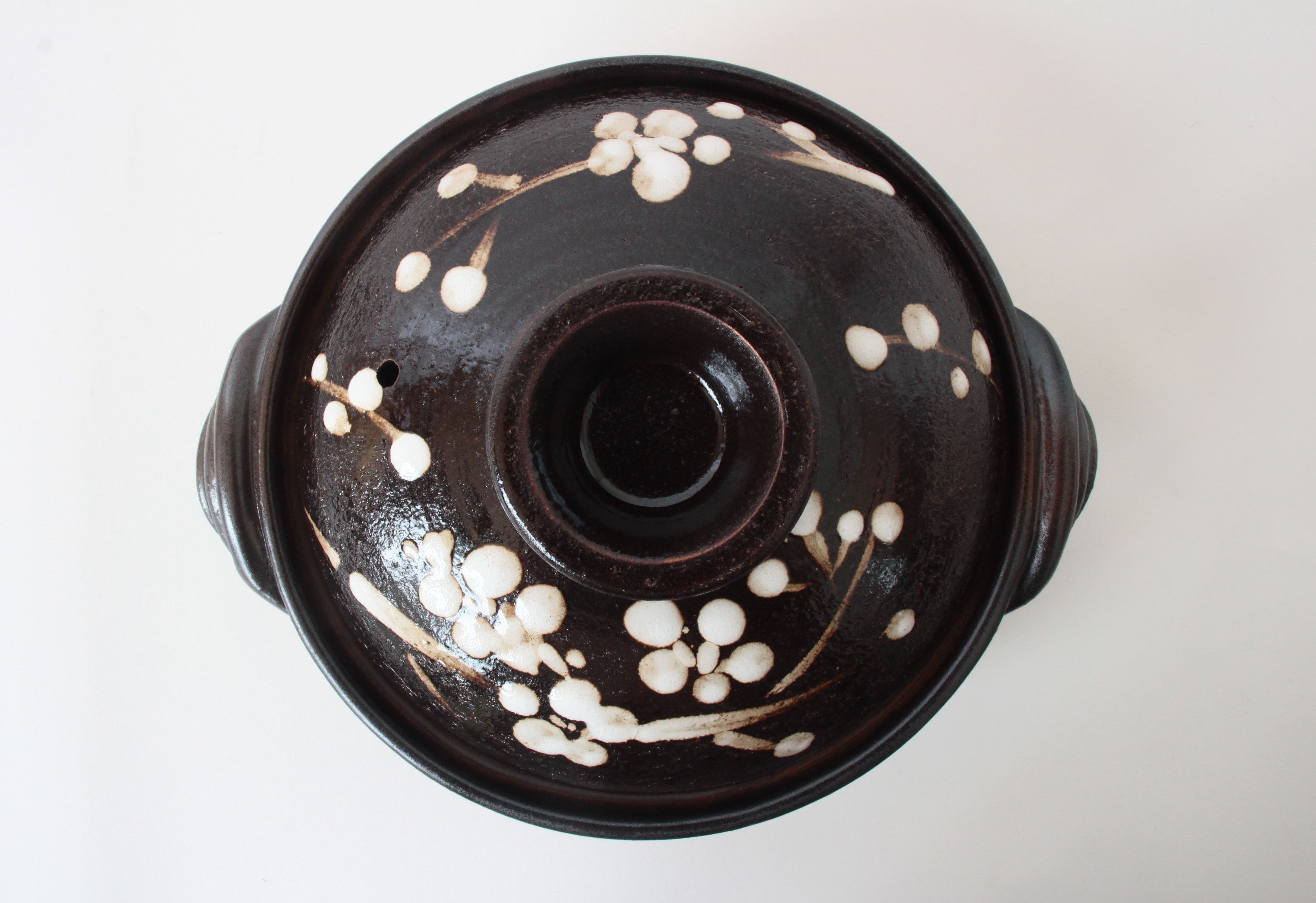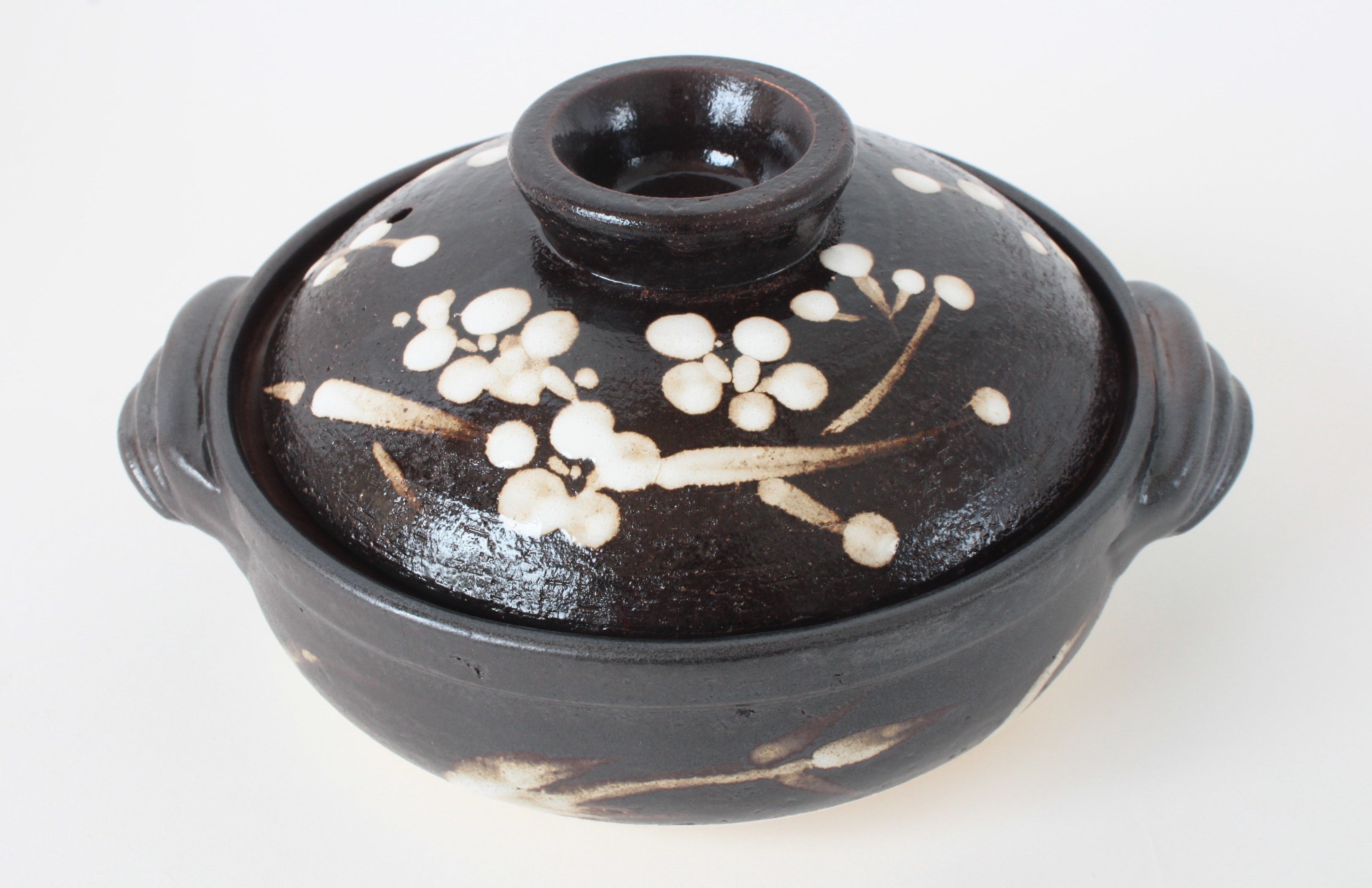 萬古焼 土鍋 黒吹梅花 6号鍋 直火・オーブン可 (直径約18.0cm)